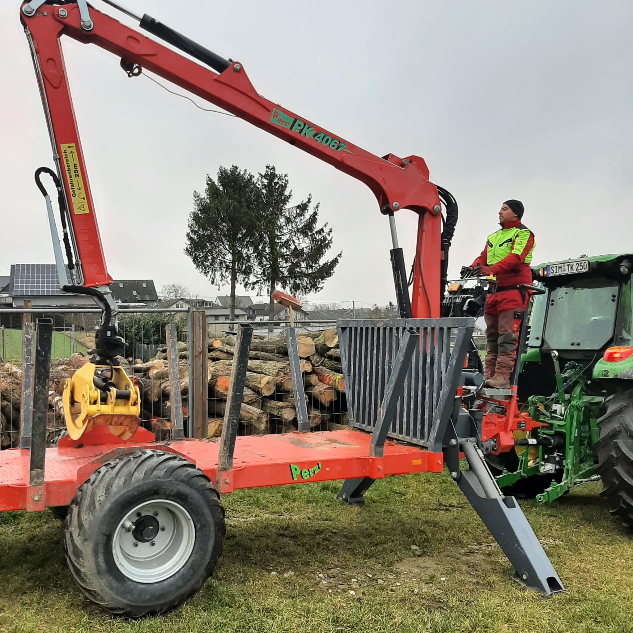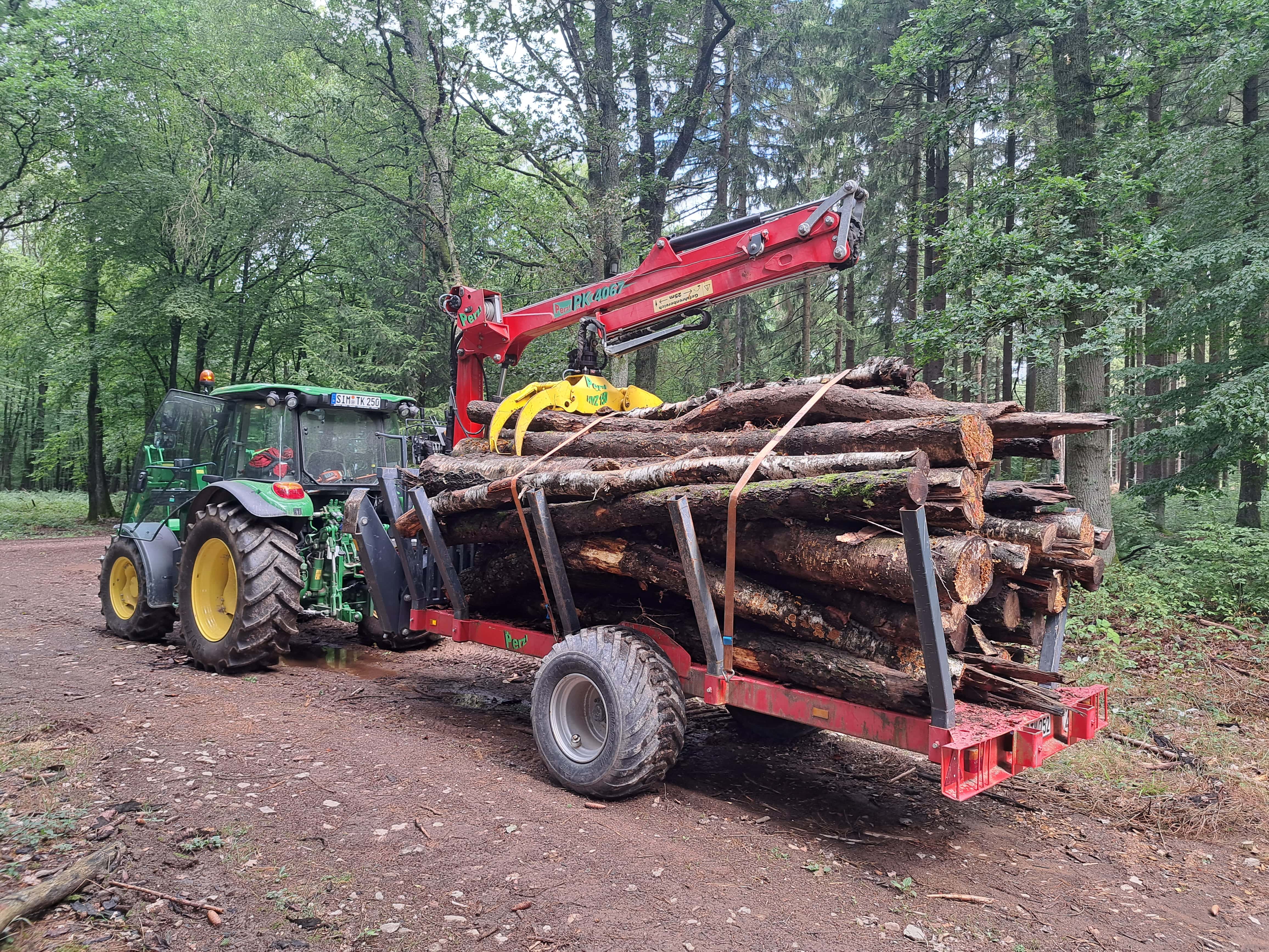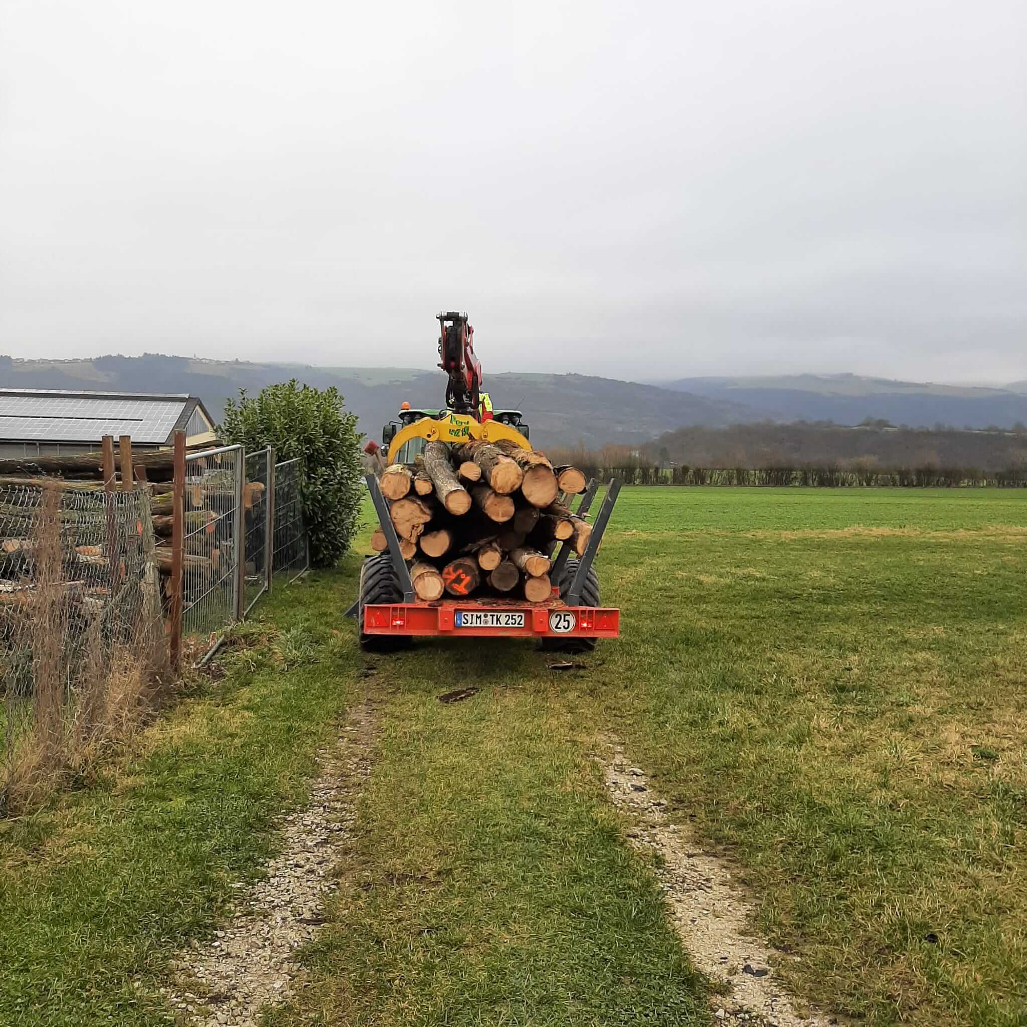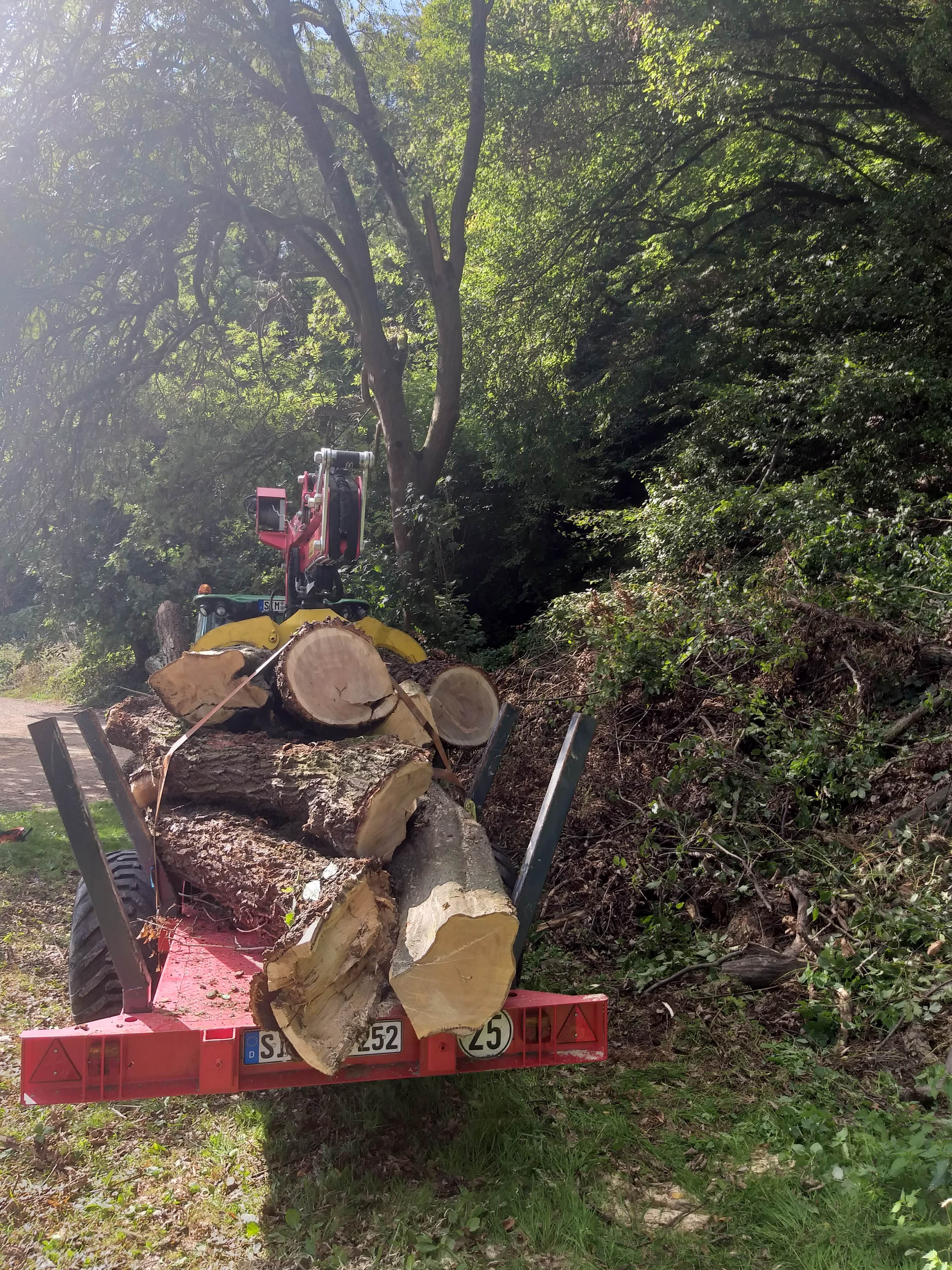 Für den sicheren Transport von Holz verfüge ich über einen Rückewagen, mit dem Meter- und Langholz optimal transportiert werden kann.