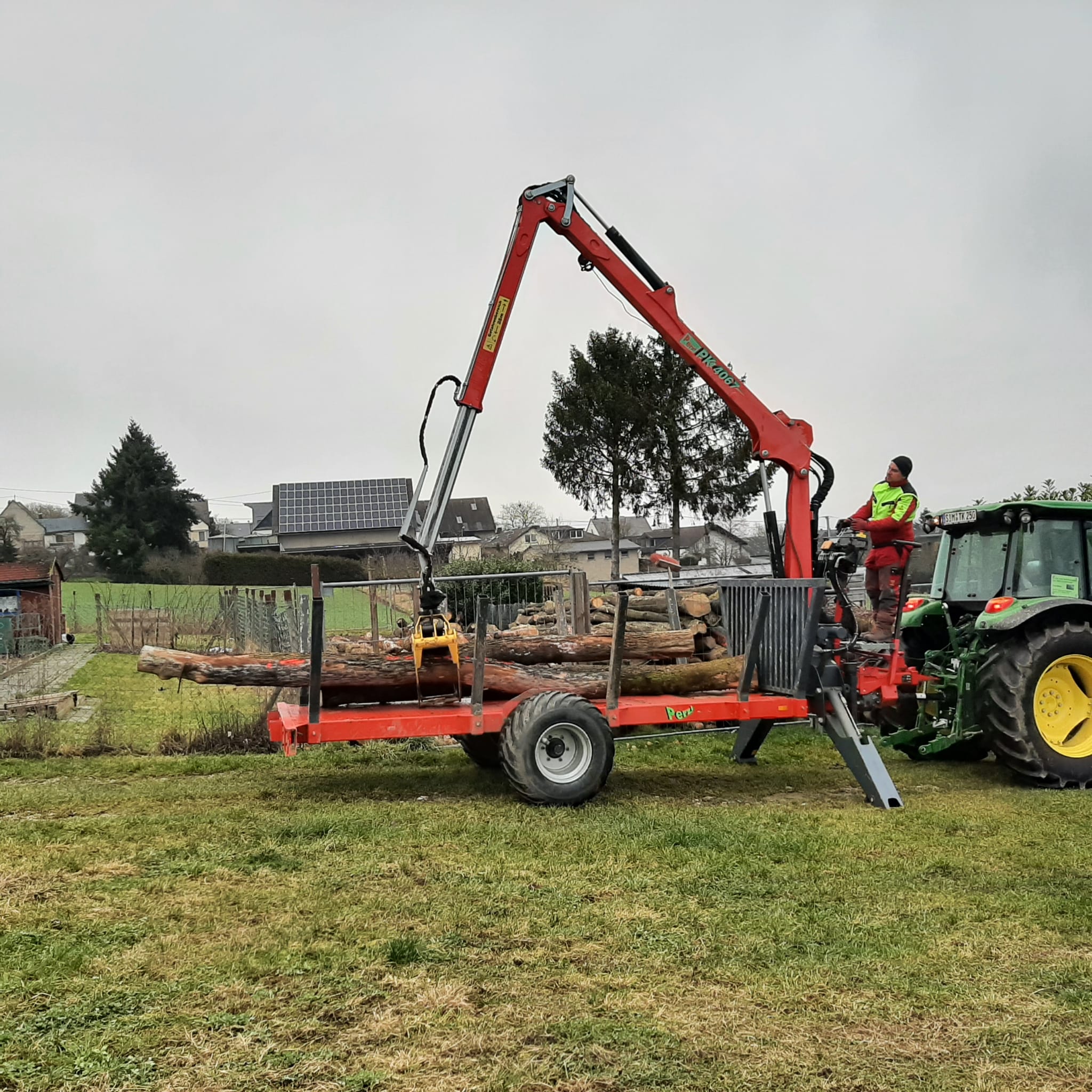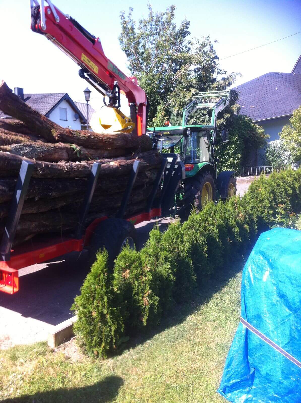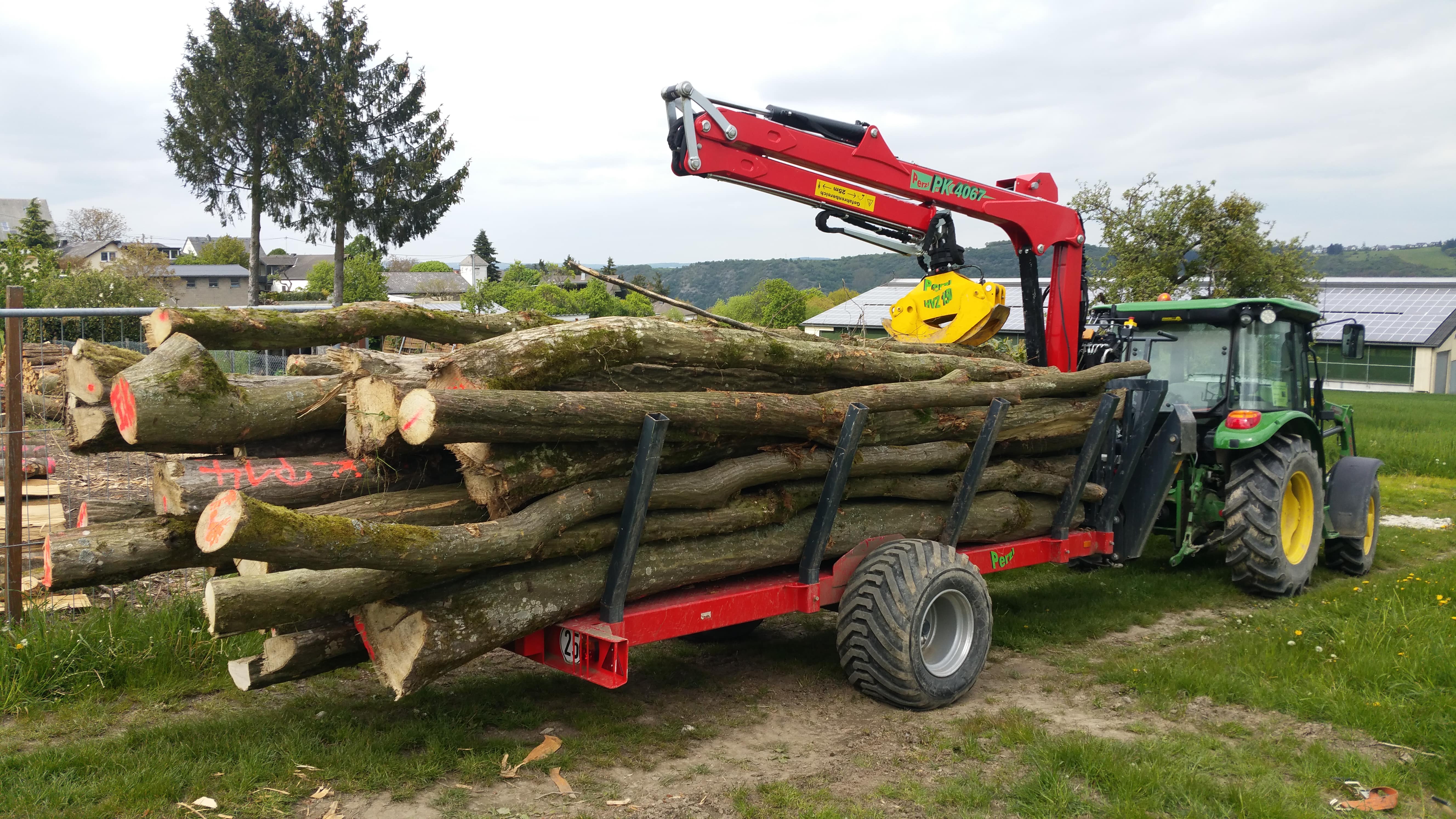 Für den sicheren Transport von Holz verfüge ich über einen Rückewagen, mit dem Meter- und Langholz optimal transportiert werden kann.