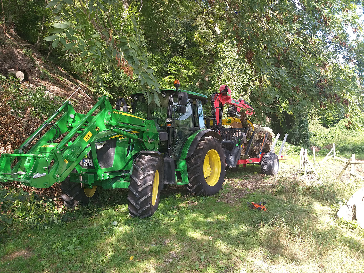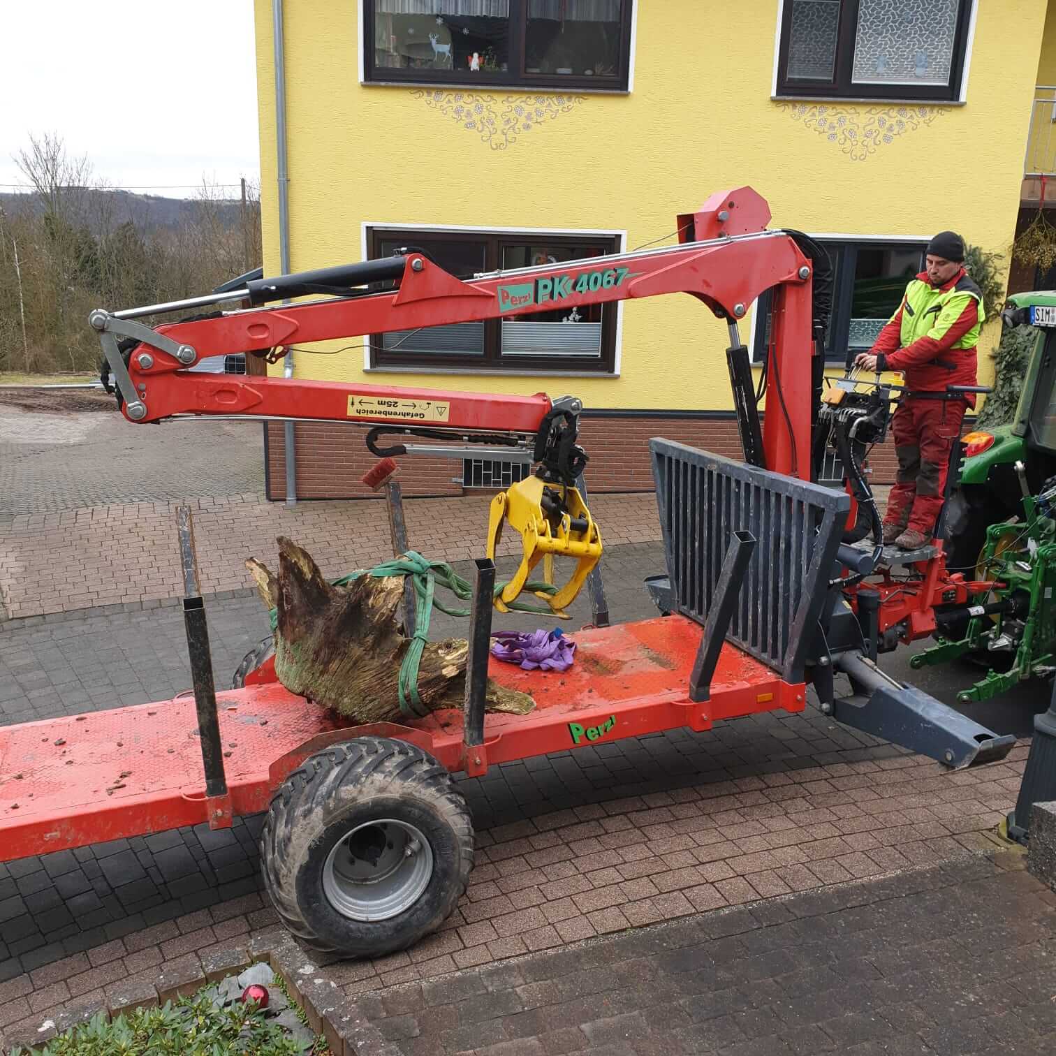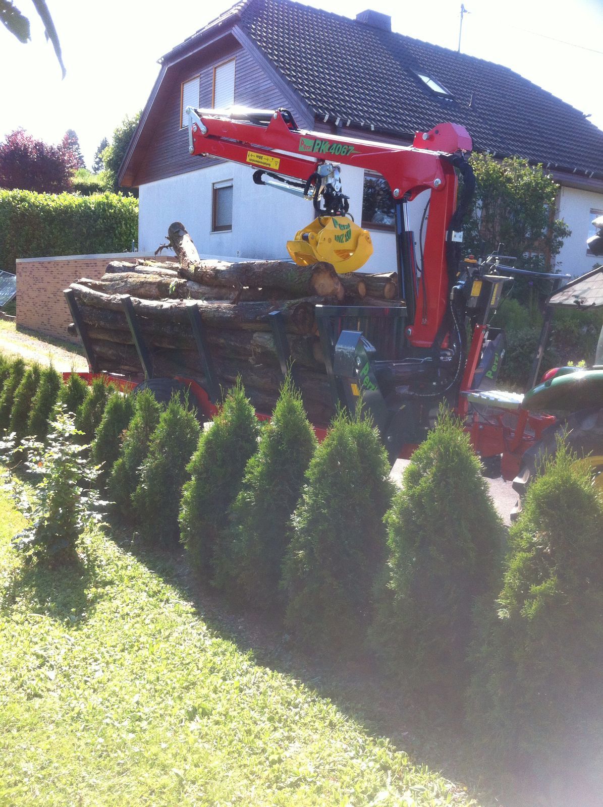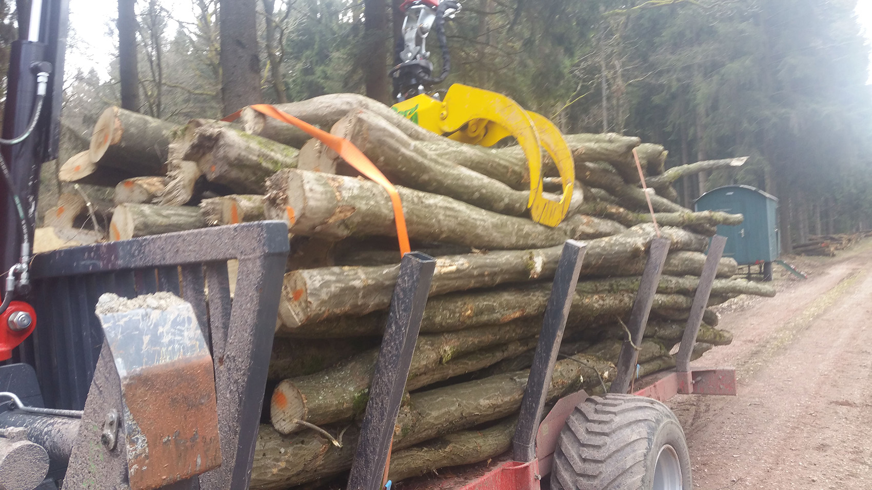 Für den sicheren Transport von Holz verfüge ich über einen Rückewagen, mit dem Meter- und Langholz optimal transportiert werden kann.